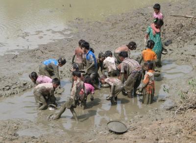 শুষ্ক মৌসুমে খাল-বিল শুকিয়ে ধরা হয় মাছ
