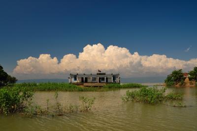 (হাওরের মাঝে একটি স্কুল, নৌকাই একমাত্র যোগাযোগ মাধ্যম)