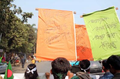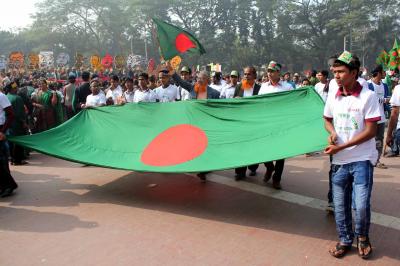 ১> গর্বের জাতীয় পতাকা হাতে একদলের মিছিলের শুরু