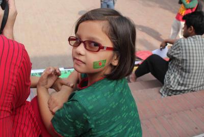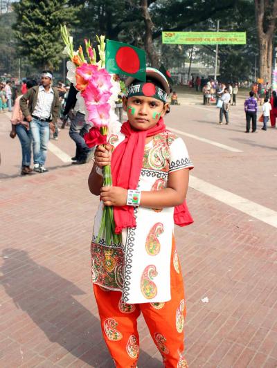 ১১> শহীদদের জন্য ফুল হাতে এক অচেনা ছোটবোন।