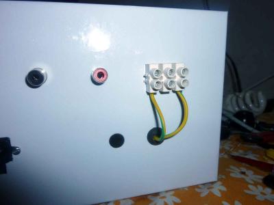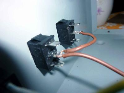 ৬>ফ্যান ও লাইটের সুইচের উপরের ফাকা পোর্টে ২ টি ১ কিলো রেজিষ্টর সংযুক্ত করুন। এই দুইটি রেজিষ্টের অপর প্রান্তে দুইটি LED বসবে। LED র নেগেটিভ থাকবে বডির সাথে সংযুক্ত। দুইটি সুইচের উপরের পয়েন্ট থেকে দুটি তার RCA Jack এর মিডল পয়েন্টে কানেক্ট করবেন।