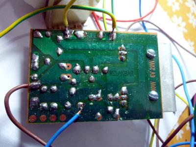 ৪> এবার ছবির অনুযায়ী ২ টা ডায়োড আর একটা ক্যাপাসিটরের কানেকশন করে ফেলুন। ক্যাপাসিটরের নেগেটিভ পয়েন্ট টি ক্যাসিংয়ের সাথে ঝালাই করে লাগিয়ে দিন। ক্যাপাসিটরের দুই লেগে ১৫ ভোল্ট ডিসি পাবেন।