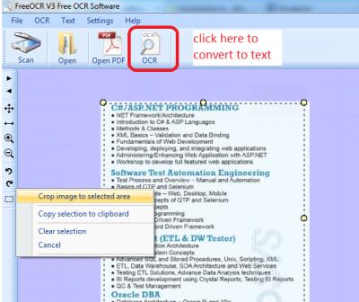 ২ । এরপর যদি কোন এরিয়ার নির্দিষ্ট অংশ থেকে টেক্সট এ রূপান্তর করতে চান তাহলে মাউস এর লেফট বাটন প্রেস করে ড্রাগ করুন । এরপর ক্রপ করার জন্য সিলেকশন ফাংশন সিলেক্ট করুন বাম দিকের টুলবার থেকে ।