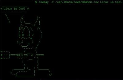 $ cowsay -f /usr/share/cows/daemon.cow linux is cool