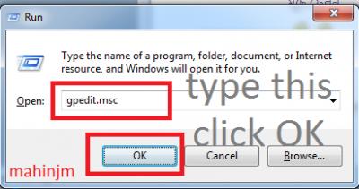 >> প্রথমে win+R চাপুন । এরপর লেখুন gpedit.msc তারপর এন্টার প্রেস করুন ।