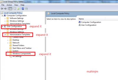 user configuration > administrative templates > windows components > windows explorer সিলেক্ট করুন । নিচের ছবি দুইটি দেখেন