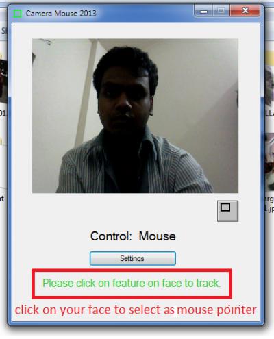>>> প্রথমে সফটওয়্যারটি ওপেন করুন । তারপর নিজের ছবি দেখতে পাবেন । যেখান থেকে আপনাকে মাউস পয়েন্টার এর জন্য আপনার মুখের কোন অংশকে সিলেক্ট করার জন্য বলবে। নিচের ছবিটি দেখেন তাইলে বুঝবেন