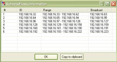 এখানে 6 টি নেটওয়ার্কের নেটওয়ার্ক এড্রেস, ওই সাবনেটের রেঞ্জ এবং ব্রডকাস্ট এড্রেস দেয়া আছে। এখান থেকে টুকে নিয়ে কম্পিউটারে এড্রেসগুলো বসিয়ে দিলেই হবে। তবে মনে রাখতে হবে, নেটওয়ার্ক এড্রেস অর্থাৎ প্রথম আইপি এড্রেসটি এবং ব্রডকাস্ট এড্রেস অর্থাৎ শেষের আইপি এড্রেসটি আপনি কোন কম্পিউটারে ব্যবহার করতে পারবেন না। মাঝের সাবনেট রেঞ্জ এ যে এড্রেসগুলো দেয়া আছে ওগুলোই শুধু ব্যবহার করা যাবে।