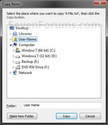 যখন Copy To Folder এ ক্লিক করবেন তখন নিচের ছিবির মত Copy To Window ওপেন হবে। কোথায় আপনার ফাইল বা ফোল্ডার টি Copy করবেন তা এখান থেকে ঠিক করে দিন