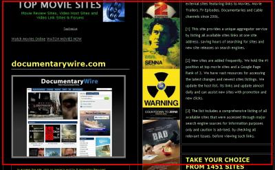 মুভিপ্রেমিকদের জন্য অবিশ্বাস্য একটি ওয়েবসাইট।এক পেজে আপনি খুঁজে নিতে পারবেন আপনার চাওয়া মুভি বা ডকুমেন্টারি বা টিভি সিরিয়ালের কাংখিত ওয়েবসাইটটি।১৪০০ এর বেশী সাইটের অ্যাড্রেস আছে এখানে।এটা দুনিয়ার ১নং মুভি সাইট আর গুগল পেজ র্যাঙ্কে ৩ নাম্বারে রয়েছে