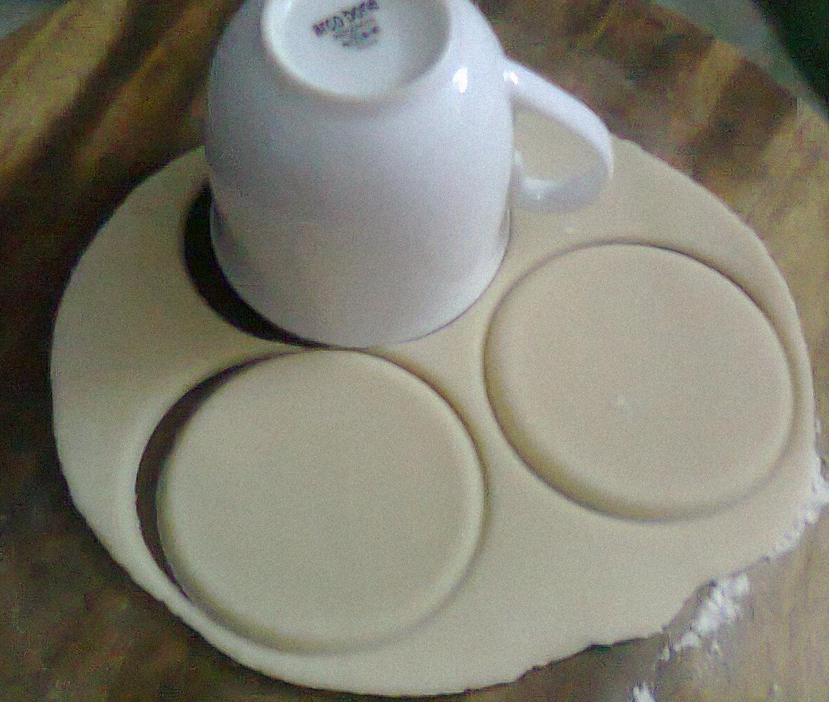 চুলায় দেড় কাপ দুধ আর লবণ দিয়ে বসালাম। ফুটে উঠলে ময়দা দিয়ে জোরে ঘুটা দিলাম। দুধের ঘনত্ব অনুযায়ী ময়দার পরিমাণ সামান্য এদিক ওদিক হতে পারে। এরপর নামিয়ে হাত দিয়ে মথে নরম খামির বানালাম। একটুও পানি দেয়া যাবে না। এরপর এক খামচি খামির নিয়ে রুটি বানালাম। রুটিটা বেলতে একটু কষ্ট হয়েছে, কারণ দুধে গোলানোর কারণে খামিরটা খুব ইলাস্টিক হয়ে গেছে। যা হোক, রুটির পুরুত্ব হবে একটু বেশী। মেলামাইন বা চিনামাটির প্লেট যেরকম পুরু হয় সেরকম। এবার রুটি থেকে ছোট্ট করে কাটলাম। ছবিতে দেখেন। আমি কাপ দিয়ে কেটেছি। এই মাপের অন্য কিছু দিয়েও কাটা যায়। কেটে ঘষা দেয়া যাবে না। তাহলে কিনার মোটা হয়ে যাবে। এইরকম তিনটা ছোট্ট রুটি দিয়ে একটা পিঠা হবে।