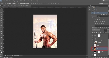 ৩। এবার background ইমেজের উপরে আমাদের মডেলের ছবি ড্রাগ করি। আমি এখানে fitness model "Lazar Angelov" এর ছবি ব্যবহার করেছি, আপনারা চাইলে আপনাদের ছবি ইউজ করতে পারেন।