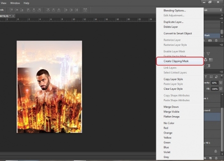 ৫। এবার মাউসের রাইট বাটন ক্লিক করে create clipping mask করে দেই। এর ফলে আপনার ছবির উপরে clipping mask তৈরি হবে।