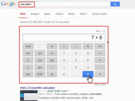 আপনি যদি কাজের সময় ক্যালকুলেটর খুঁজে না পান, তাহলে গুগলে calculator লিখে সার্চ দিন, দেখবেন ভার্চুয়াল ক্যালকুলেটর হাজির হয়ে গেছে।