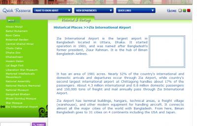 আজকে সকাল ঢাকা সিটি কর্পোরেশনের ওয়েব সাইটে ঢুকলাম কিছু ইনফরমেশনের জন্য। ঘুরতে ঘুরতে তো আমি আজব। জিয়া আন্তর্জাতিক বিমানবন্দর। এইটা আবার ঢাকা সিটির কোথায়?? সরকারের আইটি এক্সপার্টরা কই?? জয় কি এগুলো দেখেনা? দেশ তো শেষ হয়ে গেল। মৌলবাদে ভরে গেল। নানার দেশ রক্ষায় কি তার কোন দায়িত্ব নাই?