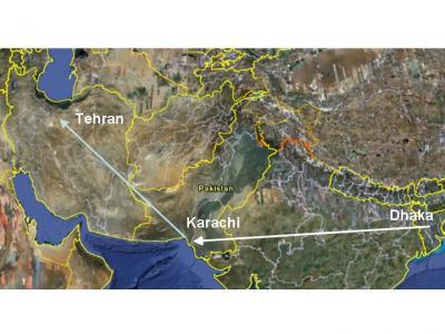 করাচী থেকে বাইরোডে পৌছুলেন পাকিস্তানের বেলুচিস্তান প্রদেশে । সেখান থেকে বর্ডার পার হয়ে প্রবেশ করলেন ইরানের সিস্তান-বেলুচিস্তান প্রদেশে । জাহেদান শহর থেকে দীর্ঘ বাসযাত্রা শেষে তেহরান পৌছুতে লেগে গেল পুরো তিনদিন।