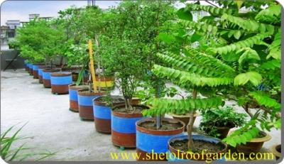 টবের সাইজঃ নতুন বাগান শুরু করার ক্ষেত্রে ইচ্ছা করলে ১২ ইঞ্চি মাটির টব দিয়েই শুরু করা যায় । তবে সব গাছ ১২ ইঞ্চি টবে লাগানো ঠিক হবে না । ১২ ইঞ্চি টবের উপযোগী চারা যেমন - লেবু , ডালিম , কামরাংগা , করমচা , সফেদা , মিশরীয় ডুমুর , চেরী ফল , কমলা, বারমাসী আমড়া ইত্যাদি । ১৬-২০ ইঞ্চি টবের উপযোগী গাছ -থাই মিষ্টি তেতুল , পেয়ারা , জামরুল , আংগুর , বাতাবী লেবু , আম , আতা , অরবরই , আমলকি , মালটা ইত্যাদি । ২০ ইঞ্চি টবের চেয়ে বড় মাটির টব না থাকায় এর চেয়ে বড় সিমেন্টের টব বা হাফ ড্রামের উপযোগী গাছ - যে কোন কূল , জলপাই , কতবেল , বেল , বারমাসী কাঁঠাল , জাম , পেঁপেঁ , কলা ইত্যাদি । উল্লেখ্য যে , উক্ত গাছ গুলি এর চেয়ে ছোট টবে করাও সম্ভব । তবে ভাল ফলাফলের জন্য বড় টব আবশ্যক । আমার ছাদে বেশির ভাগই কালার ড্রাম । এই ড্রামের স্থায়ীত্ব খুব কম । খুব বেশি হলে তিন বছর । আপনারা যারা শুধু শখের বশে বাগান করতে চান তারা আবার আমার এই ড্রাম দেখে আগ্রহী হয়ে উঠবেন না । বলতে পারেন তাহলে আমি কেন উক্ত ড্রাম ব্যবহার করি । আসলে আমার এতে কোন লস হয় না । কারণ আমি প্রতি বছরই জাতীয় বৃক্ষমেলায় অংশগ্রহন করি । আর তাতে পুরানো গাছগুলো বিক্রি হয়ে যায় । আবার নতুন করে নতুন ড্রামে গাছ লাগাই ।