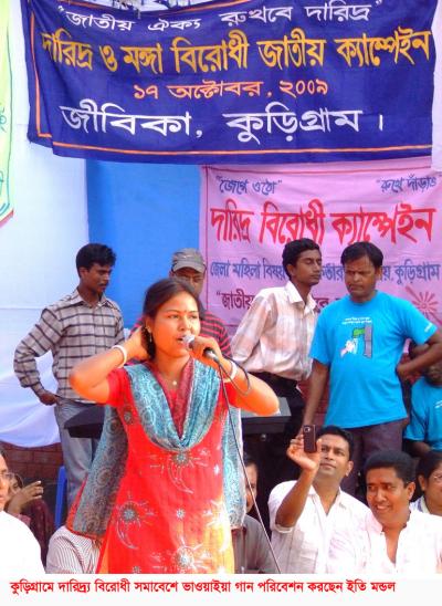 কুড়িগ্রামে দারিদ্র্য বিরোধী সমাবেশে হাজার হাজার দুস্থ্য নারীদের অংশগ্রহণ ছিল লক্ষনীয়। জেলা প্রশাসনের আয়োজনে জীবিকা, সলিডারিটি, টেরেডেস হোমস, আরডিআরএস, ছিন্নমুকুলসহ বিভিন্ন এনজিওই মূলত: দিবসটি পালন করে। তবে জেলা শিল্পকলা একাডেমী আয়োজনে গানে গানে মঙ্গা মুক্তির আহবান ছিল অনবদ্য। আর জীবিকার কর্মী ও সুবিধাভূগিরাই উপস্থিতি ছিল তলনামূলক অনেক বেশি।
