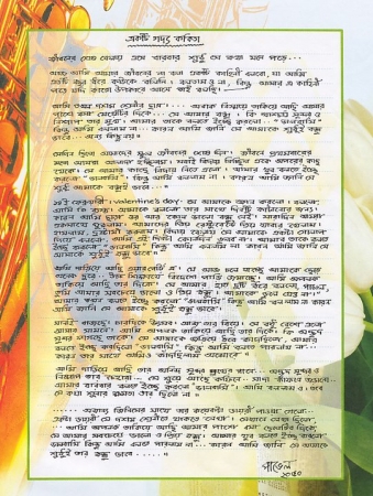 ১৪ই ফেব্রুয়ারী , Valentine’s Day, সে আমাকে ফোন করলো, বলল, আমি কি ব্যস্ত , আমাকে বললো তার সাথে দিনটি কাটানর জন্য, কারন আমি ছাড়া তার ভাল কোন বন্ধু নেই। সারাদিন আমরা একসাথে ঘুরলাম । আমাদের প্রিয় রেস্টুরেন্ট এ প্রিয় খাবার খেলাম, হাসলাম, দুষ্টামি করলাম। বিদায় বেলায় সে আমাকে একটা গোলাপ দিয়ে বলল “আমি এই দিনটা কোনদিন ভুলব না, আমার তাকে বলতে ইচ্ছে করলো , “ভালবাসি” । কিন্তু আমি বললাম না ... কারন আমি জানি সে আমাকে শুধুই বন্ধু ভাবে ...
