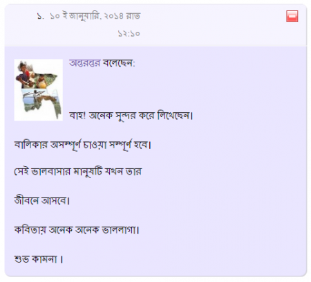 অল্প একটু কথায় কতবেশী স্নেহ লুকিয়ে থাকতে পারে তা এই মন্তব্য না পেলে বুঝতাম না