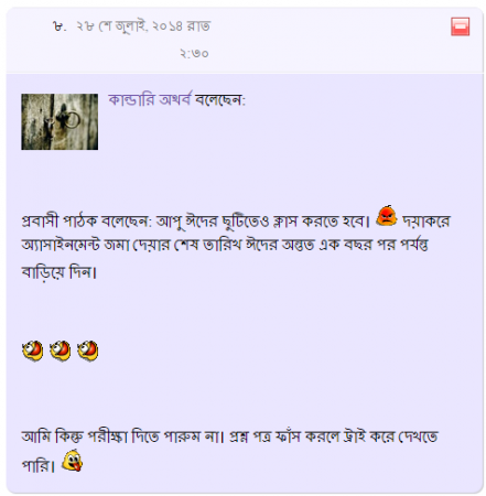 মুনতাসির নাসিফ (দ্যা অ্যানোনিমাস) : আগস্ট মাসে সেই যে পোস্ট দিলেন আর তো পোস্ট দিলেন না। নতুন নতুন পোস্ট আশা করতে পারি কি?