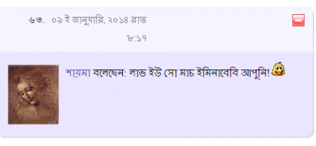 ওই সব থাক, মন খারাপ বা মেজাজ খারাপ করে এখন আর কোন লাভ নাই। তারচেয়ে বরং ১টি বছরের সুন্দর সুন্দর টুকরো-টাকরা স্মৃতিগুলোই হয়ে থাকুক সামুর সাথে আমার সম্পর্কের ভালোলাগা। সামুর সাথে জড়িয়ে থাকা মানুষগুলোর কল্যানে আমি পেয়েছি অন্য এক পৃথিবী, অন্য এক জীবন স্রোত। ভাবতে অবাক লাগে, যে মানুষগুলোকে আমি চিনতাম না, জানতাম না অথচ কি এক আশ্চার্য জাদুবলে তাদের সাথে আমি কথা বলছি, তাদের কথা শুনতে পারছি, মনের গহীনে জমা করে রাখা অব্যক্ত কথাগুলো এখানে ফুটে উঠছে। মাঝে মাঝে আমি নিজেই পার্থক্য করতে পারি না আমাকে। সামুর আমি সত্য নাকি বাস্তবের আমি সত্য। আমি মনে হয় দুটোই। যে আমায় দেখতে পারছে সেই আমি যেমন সত্য তেমনি যে আমায় বুঝতে পারছে সেই আমিও সত্য। সামুকে ছেড়ে তাই আমার দূরে থাকা হবে না বোধহয়।