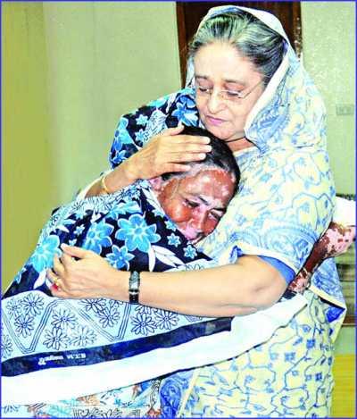 একজন প্রধানমন্ত্রী ও একজন নিঃস্ব নারীর মধ্যে এমন এক মর্মস্পর্শী দৃশ্যের অবতারণা হয় গতকাল বৃহস্পতিবার দুপুরে প্রধানমন্ত্রীর কার্যালয়ে। দুজন পরস্পরকে জড়িয়ে ধরে চোখের জলে ভাসিয়ে দেন।