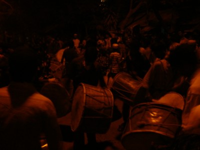 । বাজনার তালে তালে মাথা কখনো এপাশ-কখনো ওপাশ, চুল ছুইয়ে গড়িয়ে যাওয়া পানি শূন্য লাফিয়ে পলাতক আসামী হয়। হাফিয়ে উঠলে অজানা অচেনা কিশোর মৃদু হেসে নিজের কোমরে প্যাচিয়ে ক্লান্ত বাদককে আরাম দেয়। আবার কিছুটা পথ বিরতি, আবার থামা, আবার বাজনা... ঢ্রিম ঢ্রিম ঢ্রিম... পুরো মহল্লা এক-ই সুরের তালে তাল তোলে...