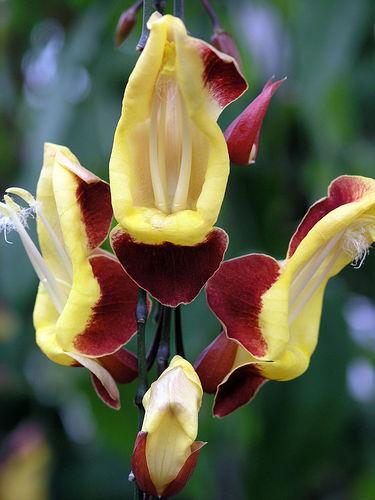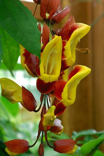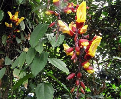 ফুলটির নাম - Dolls shoes বৈজ্ঞানিক নাম Thunbergia mysorensis এটি Acanthaceae পরিবারের একটা উদ্ভিদ। অন্যান্য নামের মধ্যে Mysore Clock Vine, Brick and butter vine উল্লেখযোগ্য।
