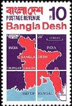 উপরের ছবিটি বাংলাদেশের প্রথম স্ট্যাম্পের, নাম "বাংলাদেশের মানচিত্র"।