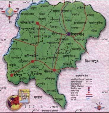 ১৮ হাজার ৯ বর্গ কিলোমিটার আয়তনের এ জেলার উত্তরে পঞ্চগড়, পূর্বে পঞ্চগড় ও দিনাজপুর জেলা, দনি ও পশ্চিমে ভারতের পশ্চিমবঙ্গ রাজ্য অবস্থিত ।