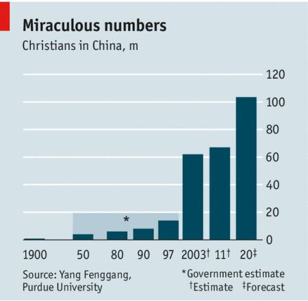 "Christians in China have long suffered persecutiont. Under Mao Zedong, freedom of belief was enshrined in the new Communist constitution (largely to accommodate Muslims and Tibetan Buddhists in the west of the country). Yet perhaps as many as half a million Christians were harried to death, and tens of thousands more were sent to labour camps."