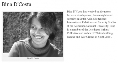 কিন্তু একজন বাংলাদেশী পণ্ডিত ঠিক সে কাজটাই করতে চেয়েছেন. আসলে, একটি দেশ হিসাবে আমরা তাঁর কাছে কৃতগগতা জানাতে গিয়েছিলাম, তিনি হচ্ছেন বীণা ডি'কস্তা যিনি সে সময়ে অষ্ট্রেলিয়া যান এবং এমন একজন ডাক্তার খুঁজে বের করে আনেন যার নাম জিওফ্রে ডেভিস। আন্তর্জাতিক পরিকল্পিত পেরেন্টহুড ফেডারেশন (IPPF) এবং জাতিসংঘের ঢাকায় আনা অস্ট্রেলিয়ান ডাক্তার, জিওফ্রে ডেভিস, যিনি বাংলাদেশী ধর্ষিতা নারীদের বিলম্বিত গর্ভপাত সম্পাদন করেছিলেন, এবং '৭১-এর যুদ্ধ শিশুদের বড় দাগে আন্তর্জাতিক দত্তক গ্রহণ সুবিধার সঙ্গেও যুক্ত ছিলেন।