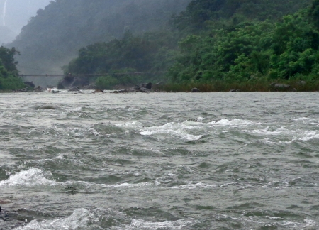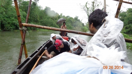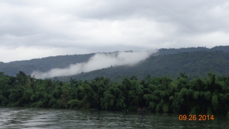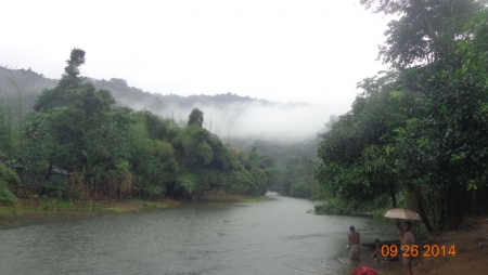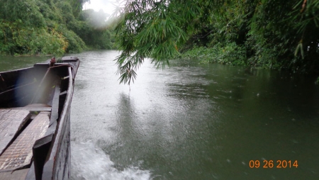 এই পর্যায়ে ব্যাপক বর্ষন শুরু হওয়াতে আর ছবি তোলা সম্ভব হয় নি। আমরা দেরী না করে রওনা দিলাম বিছানাকান্দির উদ্দেশ্যে। বৃষ্টির মাঝে আমাদের নৌকা ছুটে চলেছে পাহাড়ের পাদদেশ দিয়ে। কিছুক্ষনের মধ্যে আমারা আবার মূল নদীতে চলে এলাম। কিছুক্ষনের মধ্যেই পৌছে যাব বিছানাকান্দি।