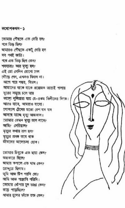 পুনশ্চঃ অসাবধানতা বশতঃ পূর্ণেন্দু পত্রীর কথোপকথন ১ কবিতাটির স্থলে ওয়েবে পাওয়া ব্লগার ঝরা পাতার কথোপকথন ১ কবিতাটা দিয়েছিলাম । ভুলটা শুধরানো হয়েছে । এই ভুলের জন্য সত্যি দুঃখিত । আসলে কবিতার শিরোনাম থেকে শুরু করে লেখার পুরো ঢংটাই পূর্ণেন্দু পত্রীর মতোন । সেজন্যই বিভ্রান্ত হয়েছিলাম । প্রিয় কবি পূর্ণেন্দু পত্রীর ভক্তদের কাছে করজোড়ে ক্ষমা প্রার্থনা করছি ।