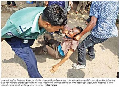 কিন্তু ওতো আর জানে না তার সহপাঠির বাবা সরকারী স্কুলের শিক্ষক। যিনি বেশিটাকা রোজগার করতে পারেন (ইতোমধ্যে তাদের জন্য আবার রাজদরবার থেকে ঘোষনা এলো তৃতীয় শ্রেণি থেকে দ্বিতীয় শ্রেনির কর্মকর্তা হিসেবে পদমরযাদা উন্নতীকরণের) আর তার বাবা মাসে একই পরিশ্রম করে বেতন পান ৩/৪ হাজার টাকা কিন্তু কি হয় এই সামান্য বেতনে? ২/৩ সন্তান সহ ৫/৭ জনের সংসারে নুন আনতে তো পান্তা ফুরানোর কথা…….. আজ যেখানে ডিমের হালি ৩৬ টাকা (!)সেখানে আমিষের/ পুষ্টির কথা কে আর দেখবে? কিভাবে মিটাবে তার সন্তানদের শিক্ষা খরচ কিংবা একটু ভাল পোষাকের চাহিদা ? তাই হাজারও শিক্ষকের মতো চাকুরি জাতীয়করণের দাবি নিয়ে এসে ছিল ঢাকাতে রাজ অধিকর্তাদের কাছে । রাজদরবারে(গণভবন)অভিমুখে তো যেতেই দিলেন না বরং থামালেন হিংস্র পেটুয়া পুলিশ বাহিনী দিয়ে গরম পানি আর অমানবিক ভাবে লাঠিপেটা করে।