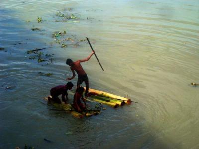 প্রথমে আমরা যে ছবিটি দেখছি, এটি নদীর বুকে ভেলা নিয়ে ভেসে চলা তিন কিশোরের ছবি । জীবনকে উপভোগ করছে তারা নিজেদের মত করে । আমার নিজের খুব ইচ্ছা করছিল নেমে পড়ি । কিন্তু .......