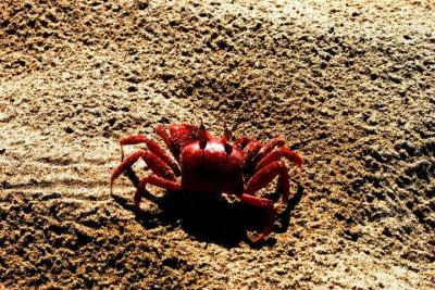 সৈকত তটে একটা মস্ত আকর্ষণ লাল কাকড়া । কি সুন্দর গুটি গুটি পায়ে এগিয়ে যায় ! দেখতে খুব ভাল লাগে । তারই একটা ছবি ইনানী বিচের লাল কাকড়া ।