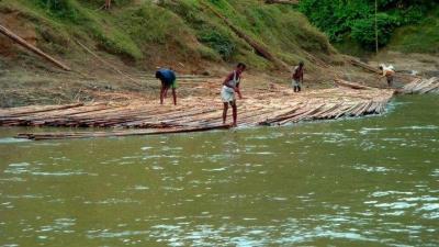 বান্দরবানে গেলে এই শঙ্খ নদ জুড়ে বাশের ভাসা ব্যাপারটা খুব কমন । এই ছবিতে যেমন দেখা যাচ্ছে ।