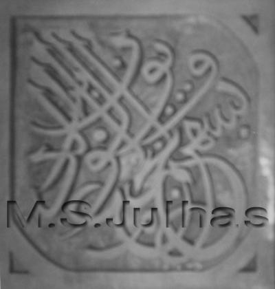 টেরাকোটা। মাটিতে খোদাই করা ক্যালিগ্রাফী। পোডানোর আগে। ২০০০ ইং সাল।