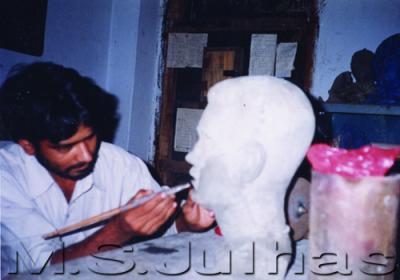 ছবিতে প্রদর্শিত ভাস্কর্যটি মূল ভাস্কর্যের কপি করে তৈরী (৩'-৮")- ২০০১ ইং সাল। মাধ্যম- সাদা সিমেন্ট কংক্রীট