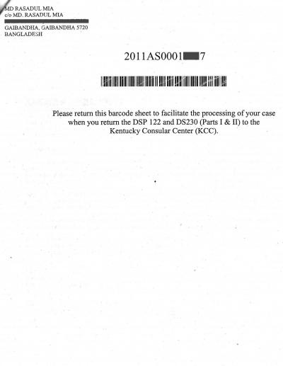 যেটার মধ্যে শুধুমাত্র আপনার ডাক ঠিকানা ও একটি বারকোড সহ একটি নাম্বার লেখা থাকবে। যে নাম্বার ও বারকোডের ভিত্তিতে তারা নিশ্চিত হতে পারবে যে, আপনিই এই চিঠির মালিক বা ডিভি বিজয়ী এবং এই চিঠির পরিপ্রেক্ষিতে আপনিই ডিভি-২০১২ বিজয়ীদের একজন।