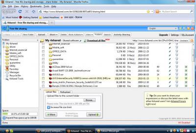 Free online storage বা Virtual drive এ music, video, photos -সহ সফটওয়্যার Upload এবং access -share ব্যবহার করতে সাইন-আপ করুন এখানে... http://www.4shared.com/signup.jsp