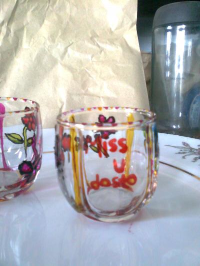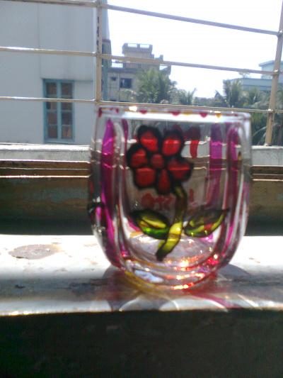 ব্লগে অপ্সরা আপু আর রুম্মা আপুর গ্লাস পেইন্টিং দেইখ্যা খায়েশ জাগছিল করার। রং কিন্নাও আনছিলাম কিন্তু সদ্ব্যব্যাবহার আর করা হয় নাইক্কা। চিন্তা কর্লাম একটা মগে ভং চং কইর্যা রং চং লাগাইয়া তাই ধরাই দিমুনি টাইন-টুইন দিভছেস গিপু কইয়া।