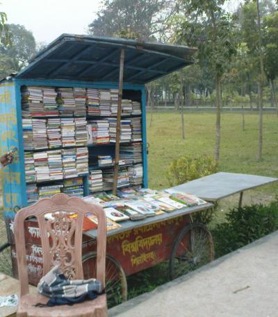 সেখানে একটি ভ্রাম্যমান বইয়ের দোকান আছে। আমরা আগ্রহ নিয়ে যাই। কিন্তু সেখানে বইয়ের সংগ্রহ দেখে আশ্চর্য হই!! সবই কেবল প্রশ্নবোধক বই!! প্রেম কেন বেদনা?, তুমি কেমন আছ? এর মাঝে অবশ্য কয়েকটি রবীন্দ্রনাথের বইও আছে। তবে সেগুলো না থাকার মতই!! /