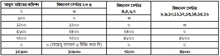 এবার আসি কমিশনের হিসাবে। চার্ট দেখে বিভ্রান্ত হবেন না। কারন ১ সাইকেল পন্য বিক্রয়ে ডেস্টিনির লাভ ১১৯৩২৫ টাকার বিপরীতে ১২৬০০ টাকা কমিশন! আসলে ইহা সত্য নয়। প্রতিটি বিক্রয়েই অন্যরা কমিশন পাবে। তাহলে তারা কোথায়? আসেন, সেই হিসাবও করি। ধরলাম আবুল ভাইয়ের বিজনেস সেন্টার ১, তাহলে পরবর্তী বিজনেস সেন্টারগুলো ২, ৩,৪ এভাবে ধরলে...