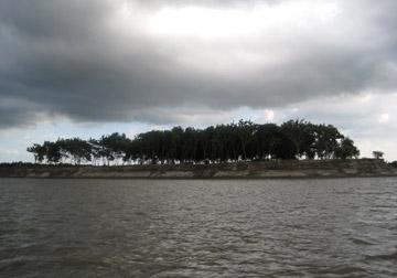 বুক বের করে ব-দ্বীপ হয়ে উঠা এক চর, উপরে গুড়ি গুড়ি বৃষ্টির মহা সতর্ক সংকেত