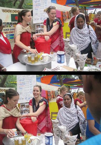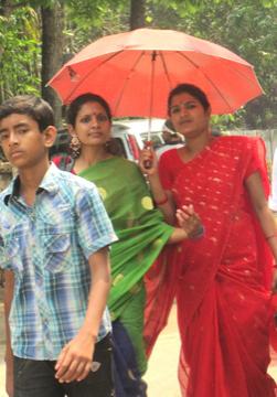 এই দুজনের কাছে ক্ষমা প্রার্থী, একই ছাতার নিচে লাল সবুজ(সম্ভবত দুইবোন, চেহারায় মিল রয়েছে) দেখে অনুমতি না নিয়েই ছবিখানি তুলে ফেলেছি