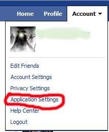 এইজন্য প্রথমে ফেসবুকে লগিন করে নিচের চিত্রের মত Account=>Application Settings যান।