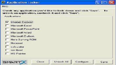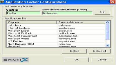 আপনি এতে অন্যান্য প্রোগ্রাম ব্লক করে রাখতে পারেন। এ জন্য আপনাকে Configure এ ক্লিক করতে হবে এবং নিচের চিত্রের মত উইন্ডো আসবে caption বক্সে আপনি যে প্রোগ্রামটি যোগ করতে চান তা লিখুন। executable file name (exe) বক্সে exe ফাইলটির নাম লিখে Add এ ক্লিক করুন নিচের চিত্রে ফায়ারফক্স দেখানো হয়েছে। এবার Ok করুন। আপনি যে প্রোগ্রামটি যোগ করলেন এবার তাতে টিক চিহ্ন দিন দেখুন এটিও ব্লক হয়ে গেছে।